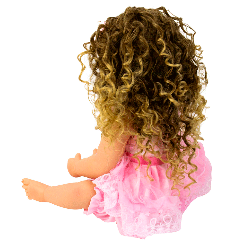 BONECA BABY REBORN V-30 VESTIDO ROSA 55CM (SILICONE)(CACHEADA)