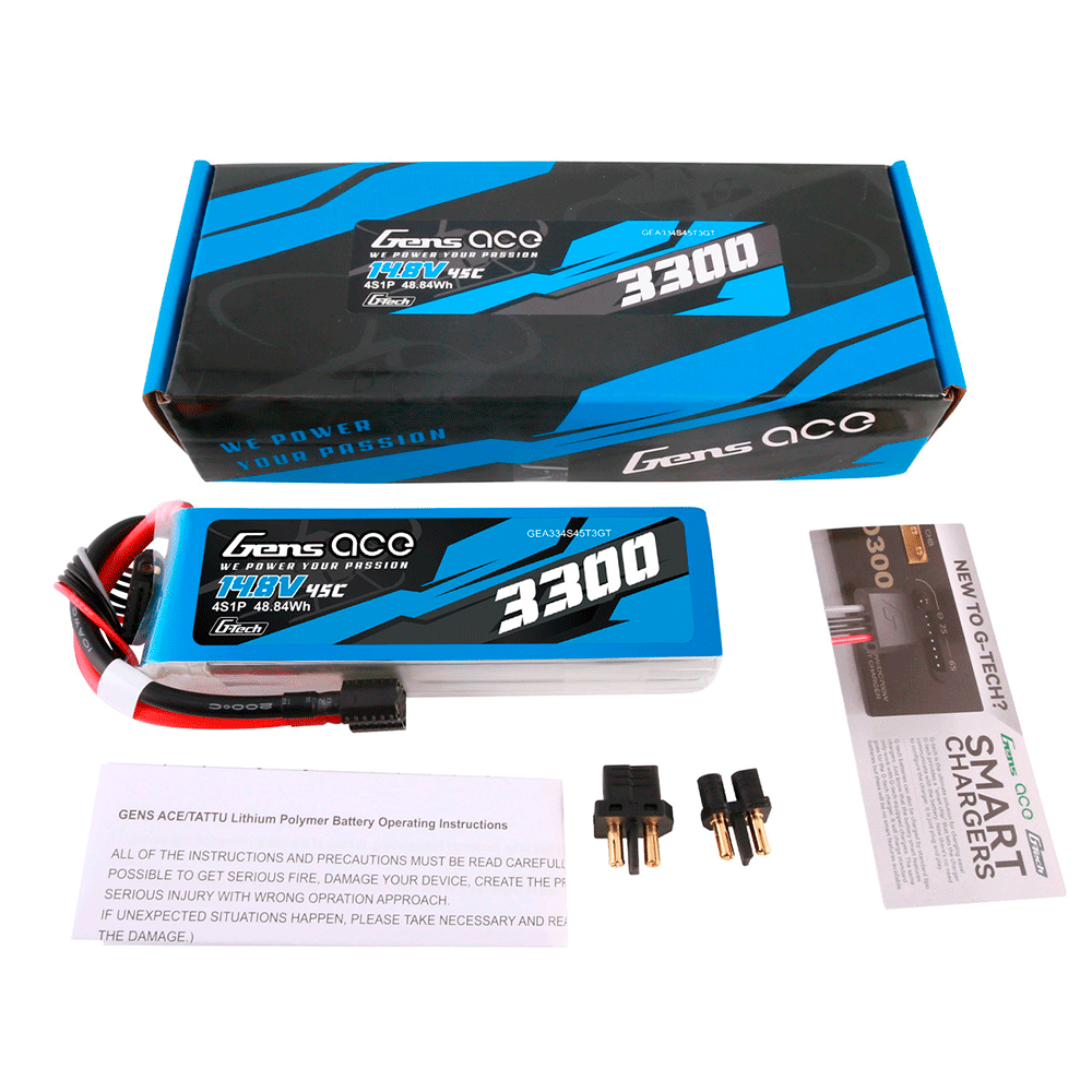 GENS ACE 14.8V 3300MAH 45C 4S G-TECH XT60 PLUG EC3/DEANS ADAPTER