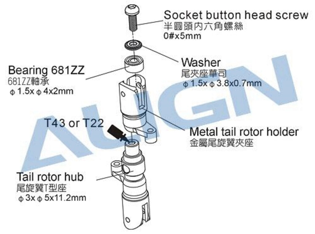 TR250 TAIL ROTOR HUB SET H25074T-1