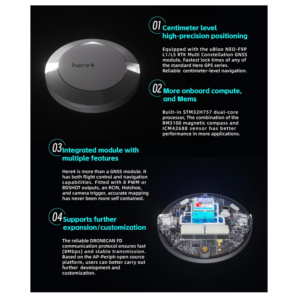 HEX PIXHAWK 4 ORANGE CUBE & HERE4 RTK GNSS (HX4-06222 & HX4-06248)