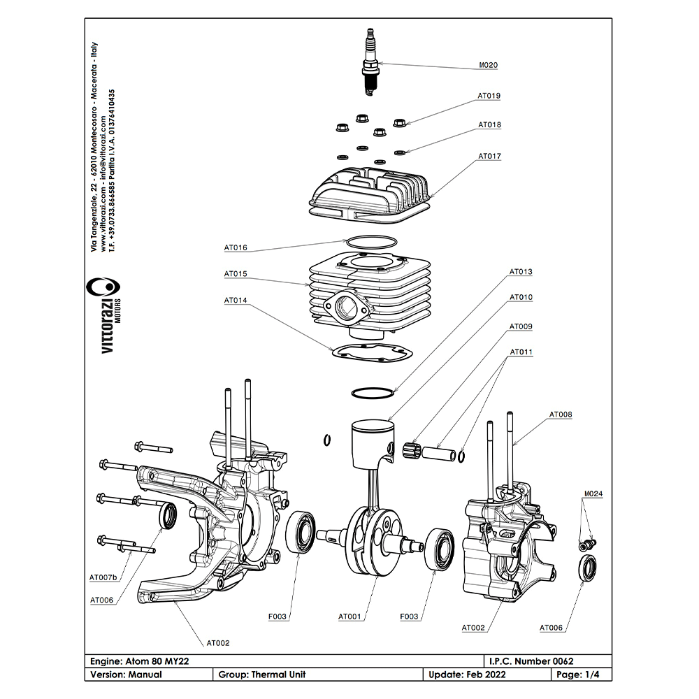 VITTORAZI ATOM80 CRANKSHAFT WITH PUSH ROD & FLYWHEEL NUT AT001