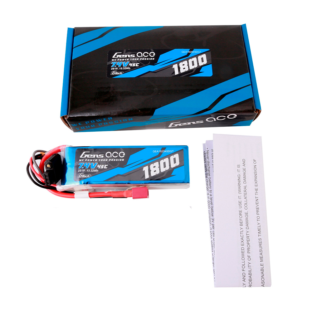 GENS ACE 7.4V 1800MAH 45C 2S G-TECH LIPO DEANS PLUG