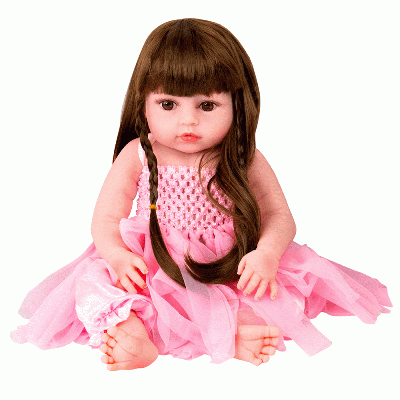 BONECA BABY REBORN V-51 VESTIDO ROSA 48CM (SILICONE)